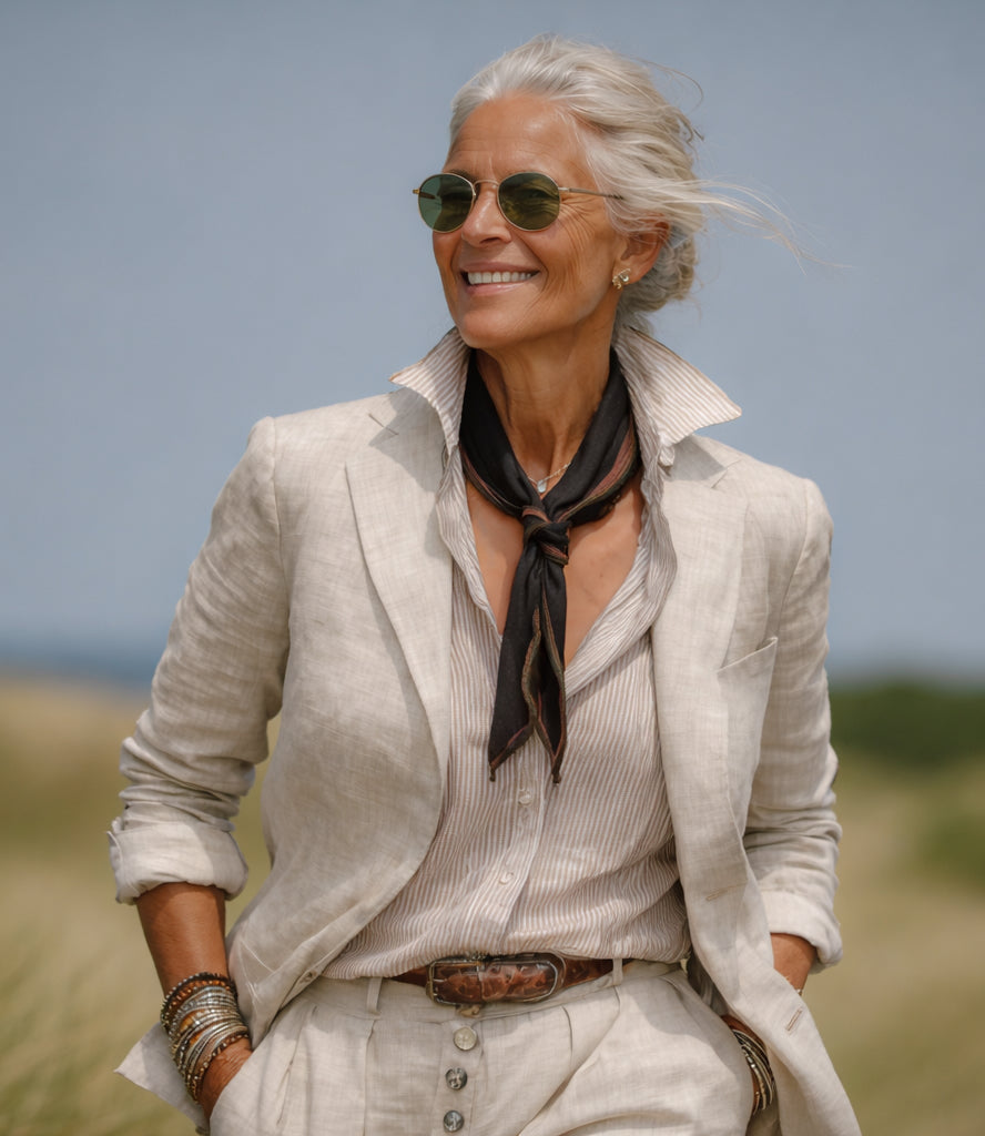 The New York New York Black Linen Neck Scarf drapes gracefully, offering multiple styling options—from a classic neck wrap to a chic shoulder drape. Designed for those who appreciate timeless elegance, this scarf transcends seasons and trends, making it a lasting investment in quiet luxury. Whether layered over tailored pieces or paired with everyday staples, it provides effortless style and sophistication.