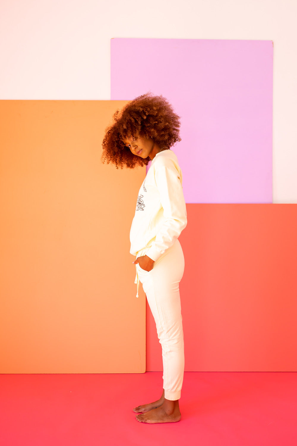 Snuggle into the 'Peace Love and Sesame Sweatshirt,' where comfort is beyond what you can imagine. This ivory-hued, upcycled sweatshirt is spun from 100% organic cotton and lovingly dyed with low-impact practices. It brings you the warmth of Sesame Street's most beloved characters, ethically crafted in the heart of Los Angeles. For the eco-conscious with a taste for timeless style.